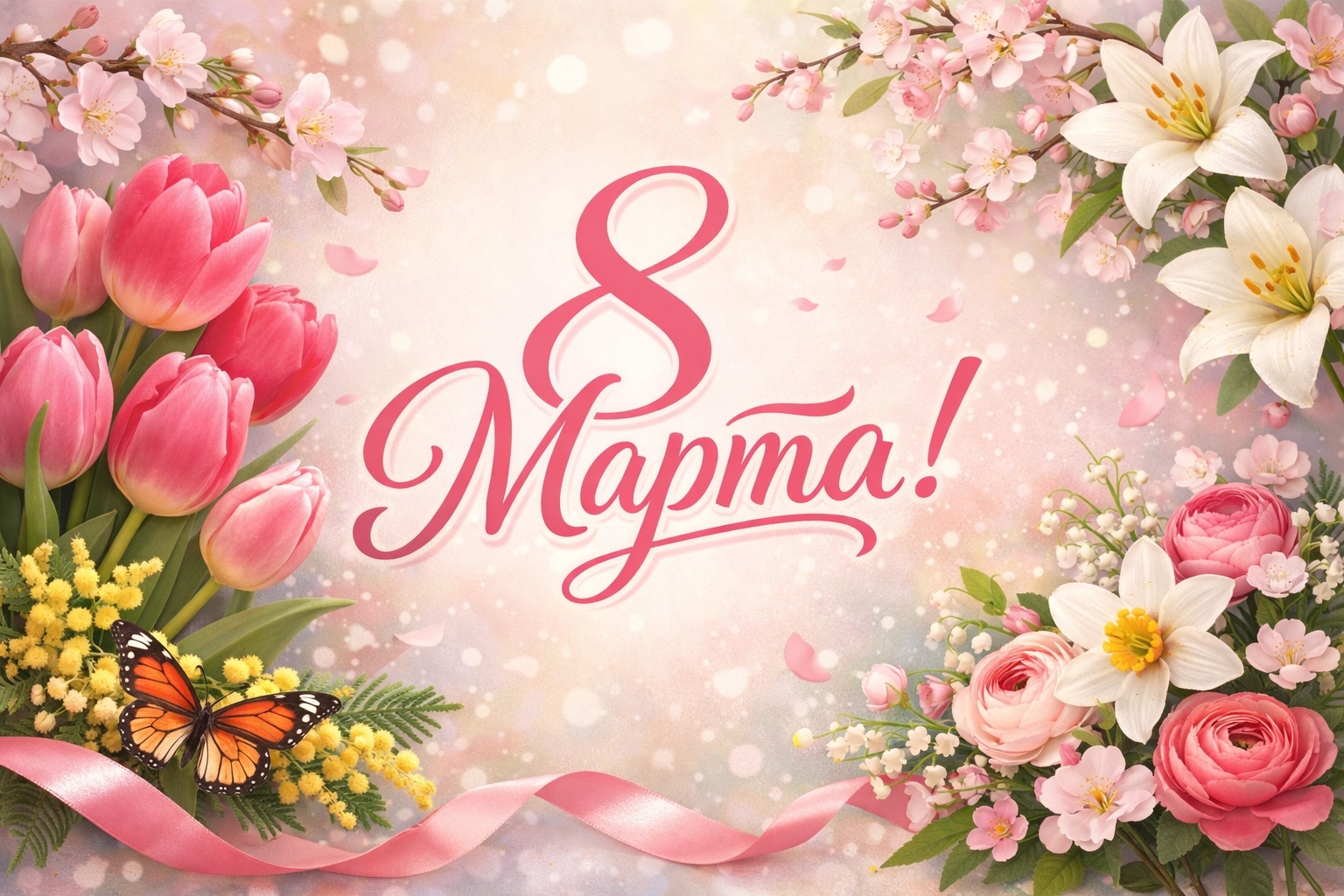 От всей души поздравляем вас с 8 Марта! Пусть этот весенний день будет наполнен улыбками, цветами и самыми теплыми словами.